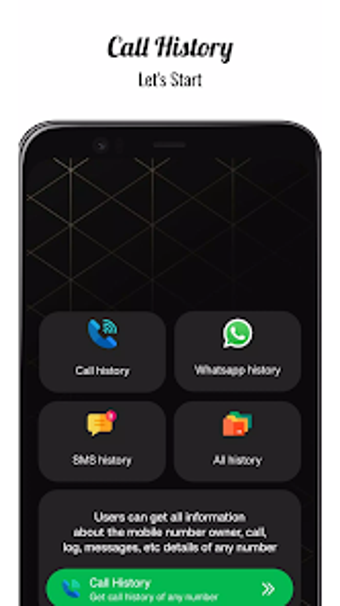 История вызовов Подробная информация о любом номере - это бесплатное приложение для Android, разработанное компанией Appworld Infotech. Оно относится к категории Утилиты и инструменты и направлено на предоставление пользователям 100% реальной информации о вызовах любого человека со всего мира.